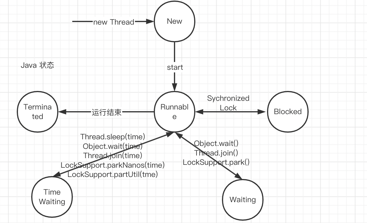 TIME_WAITING 有时间的等待,可以主动被唤醒 Thread.sleep(time)、Object.wait(time)、Thread.join(time)、LockSupport.parkNanos(time)、LockSupport.parkUtil(time)